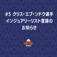 #5 クリス・エブ・ンドウ選手 インジュアリーリスト登録のお知らせ