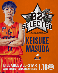 増田啓介選手 B.LEAGUE ALL-STAR ASIA CROSS TOURNAMENT 2026 B2 SELECTED 選出のお知らせ