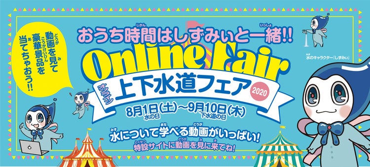 静岡市では、「水の日」、「水の週間」にあわせ、水の大切さや下水道への理解を深めていただくため、新しい生活様式を取り入れ、自宅でも気軽に参加できるように会場をウェブ上に移しフェアを実施中。