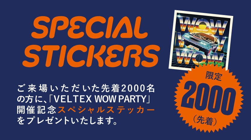 ご来場いただいた先着2000名の方に、「VELTEX WOW PARTY」開催記念スペシャルステッカーをプレゼントいたします!
