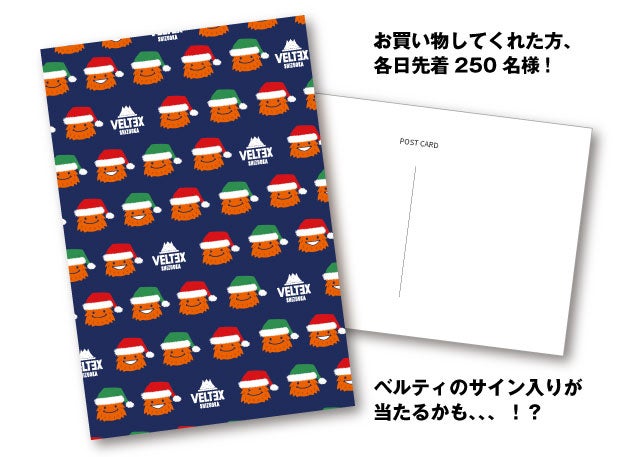 VELTI SHOPでお買い物してくれた方、各日先着250名様にオリジナルポストカードをプレゼント♪ ベルティのサイン入りが当たるかも、、、!?