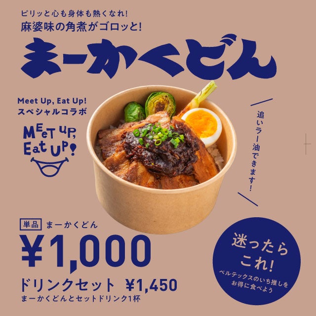 チョコクランチ:1000円/Chamコラボ!まーかく丼:1000円/定番ベルチキ:500円/クラフトコーラ:550円/100%ストレートジュース:550円/他