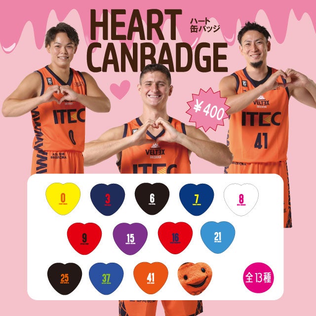 昨シーズンも大好評だったハート缶バッジ♡選手たちの好きな色を缶バッジにしてみました。