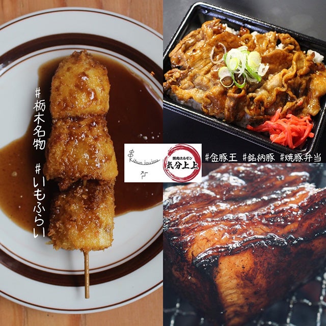 栃木名物 いもふらい/栃木名物 黒唐揚げ/焼鳥/焼肉屋の肉おにぎり/焼肉弁当/生ビール