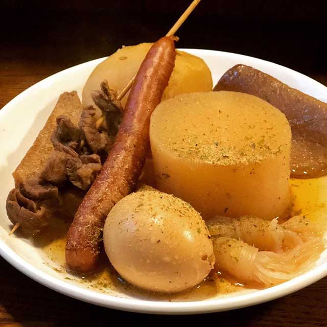 静岡おでん(盛り合わせ5種):700円/特製おでん出汁おにぎり(2個入り):400円/フランクフルト:400円
