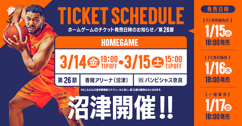 1/25(土)1/26(日) 鹿児島レブナイズ戦の試合情報 | ベルテックス静岡