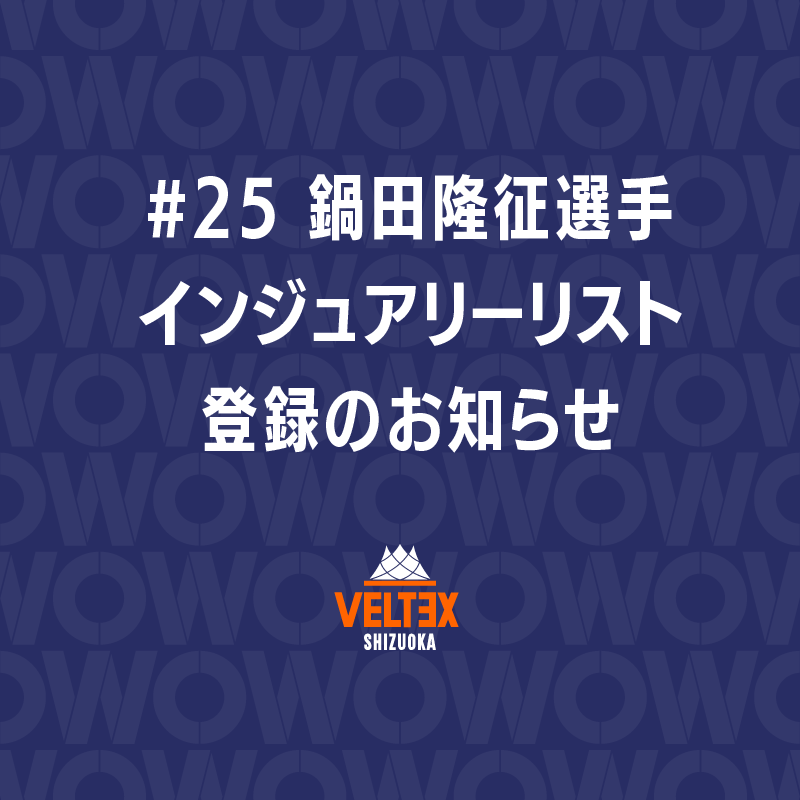 #25 鍋田隆征選手 インジュアリーリスト登録のお知らせ
