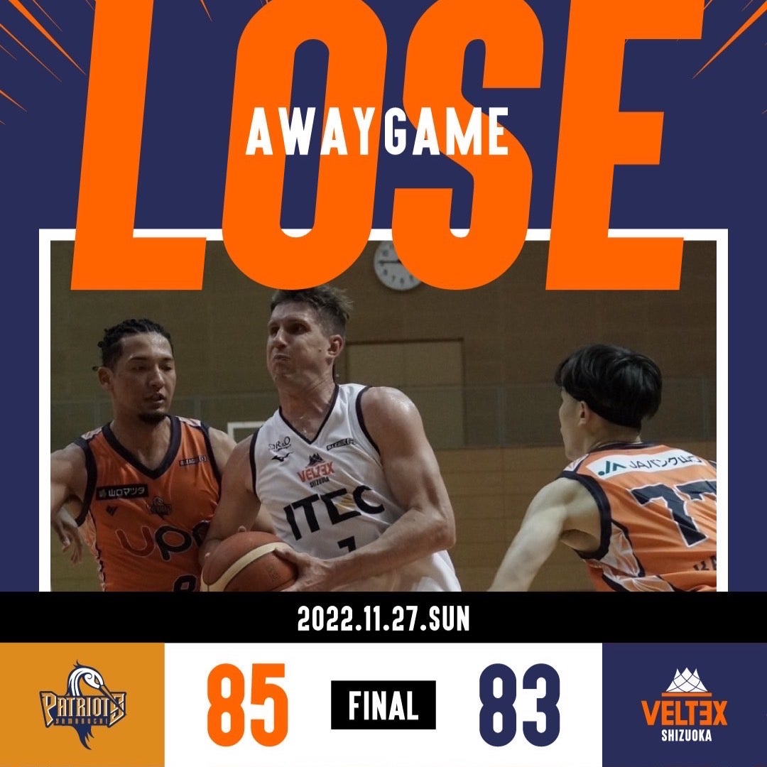 11/26(土)第8節DAY1 山口ペイトリオッツ戦ゲームレポート