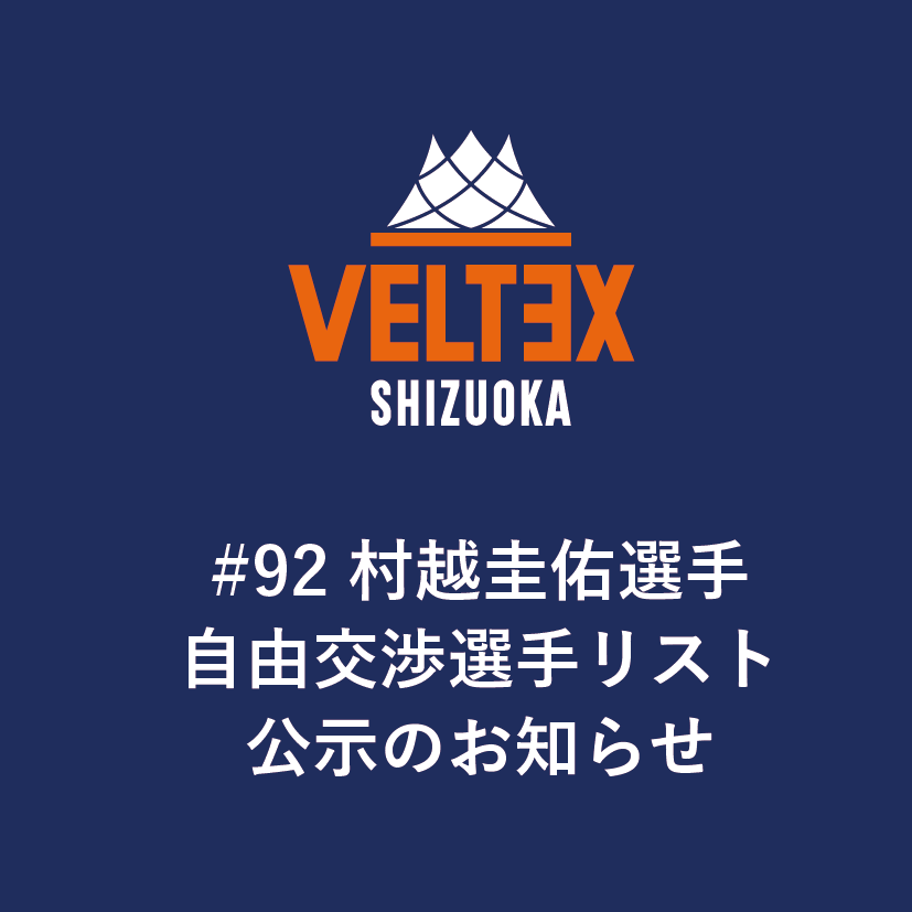 #92 村越圭佑 選手 自由交渉選手リストへ公示のお知らせ