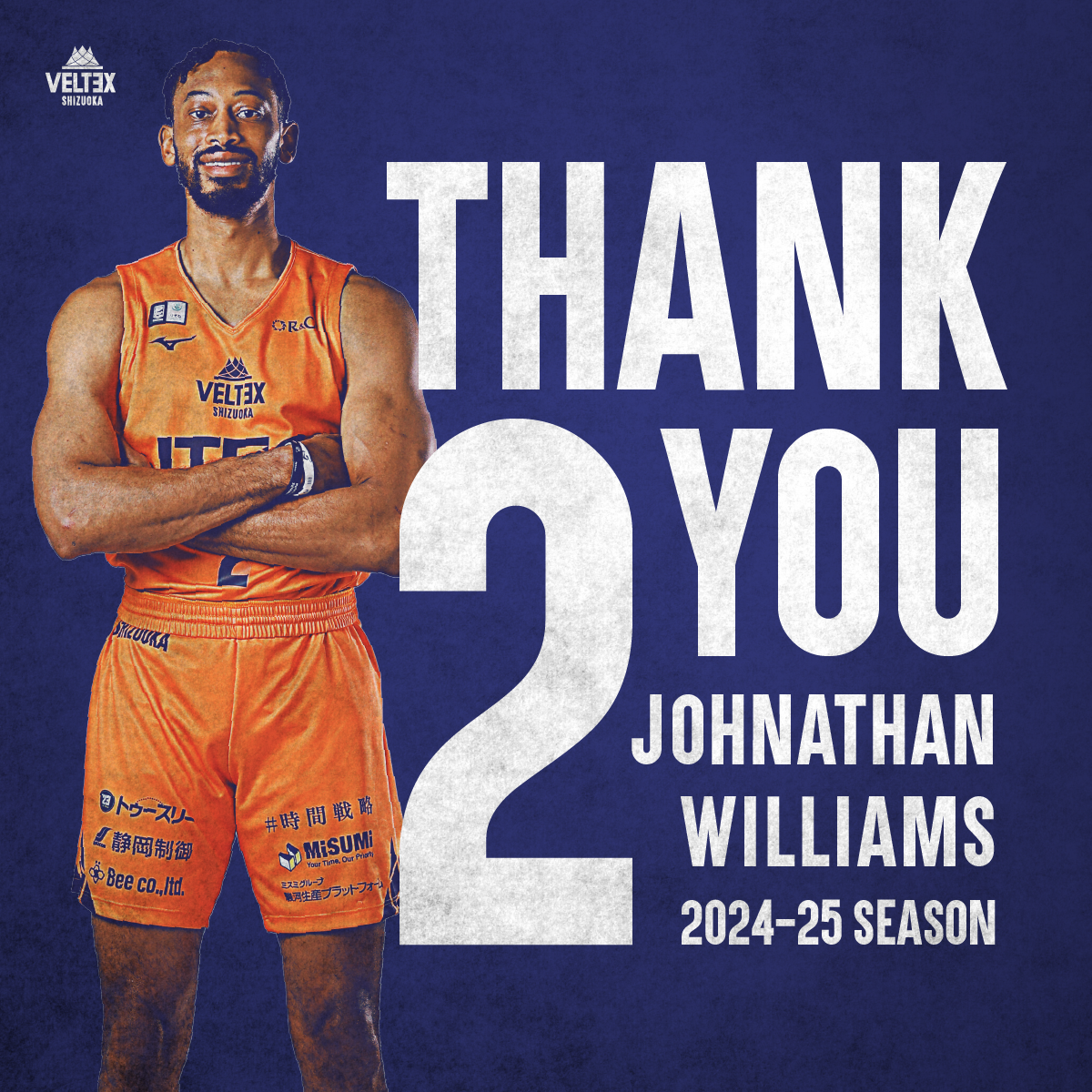 #2 ジョナサン・ウィリアムズ選手 移籍先決定のお知らせ