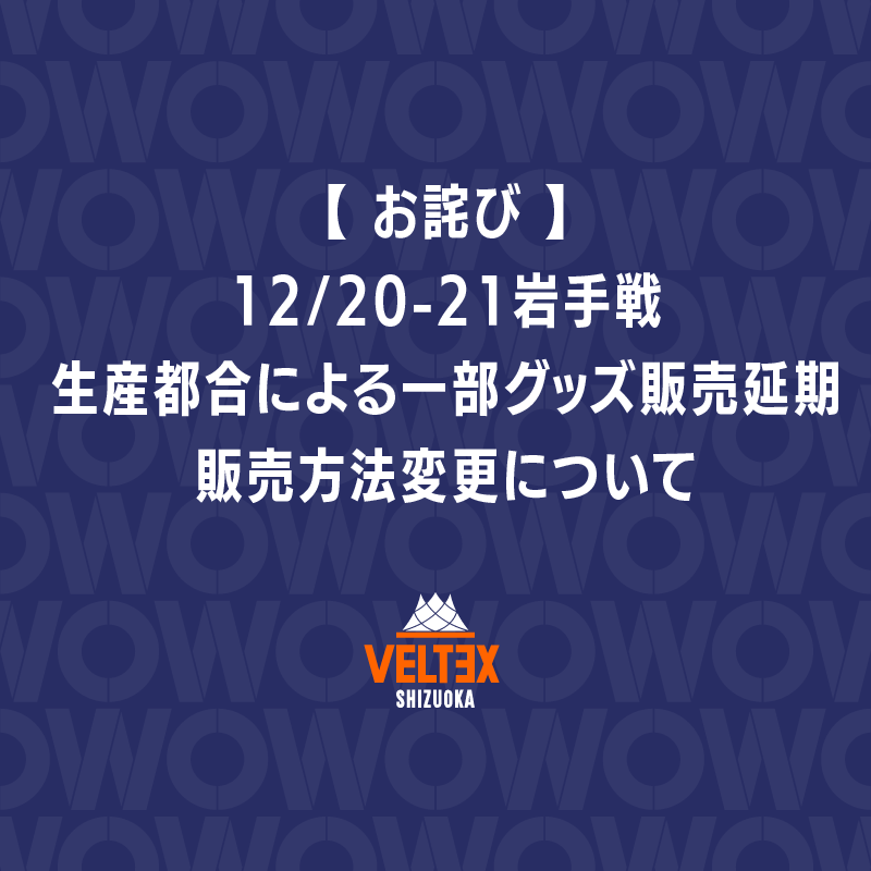 【 お詫び 】12/20-21岩手戦 生産都合による一部グッズ販売延期・販売方法変更について