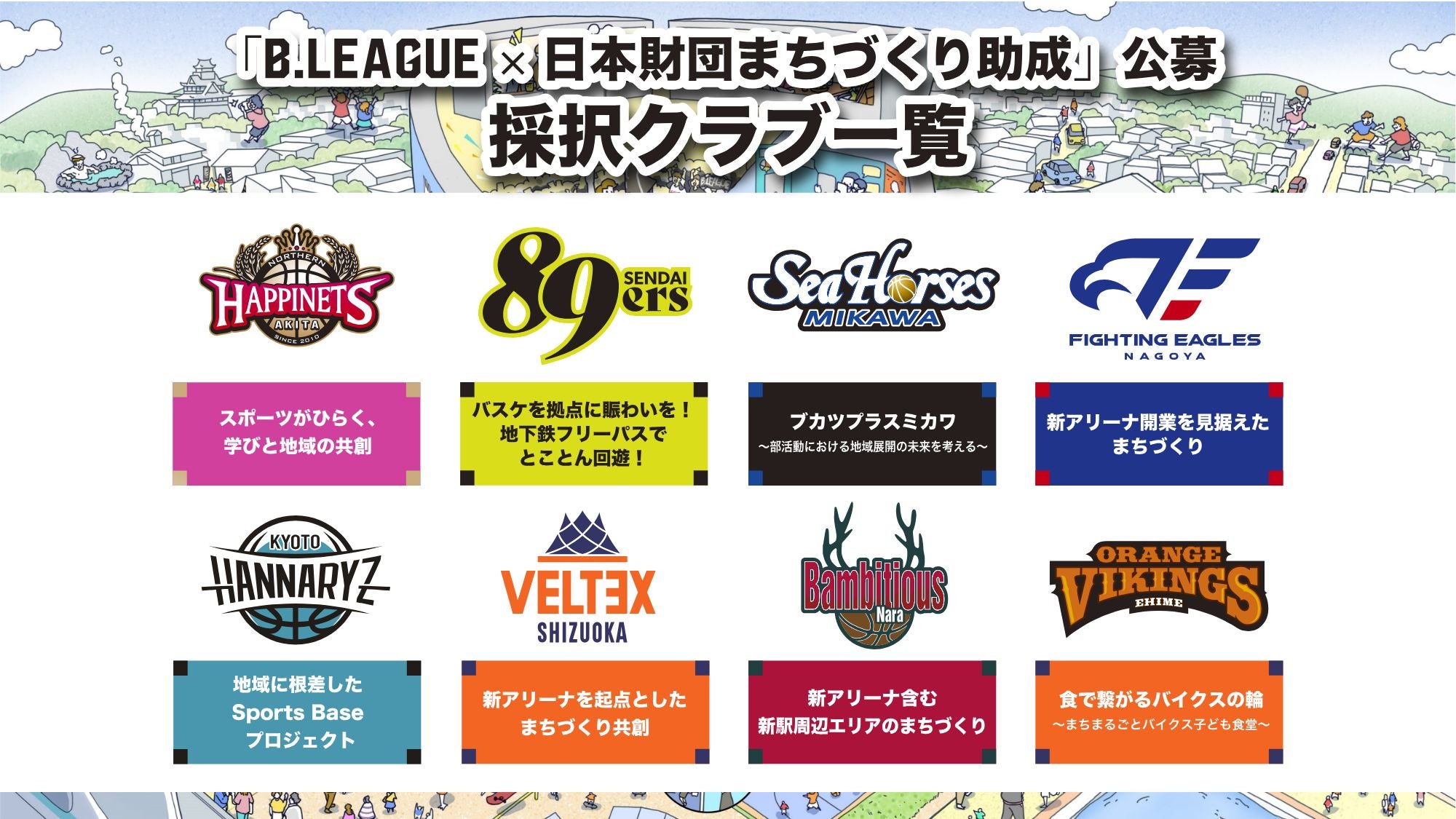 「B.LEAGUE×日本財団まちづくり助成」は、B.LEAGUEと日本財団が連携し、「スポーツ×地域課題解決」をテーマにクラブが実施するまちづくり事業を支援する取り組みです。