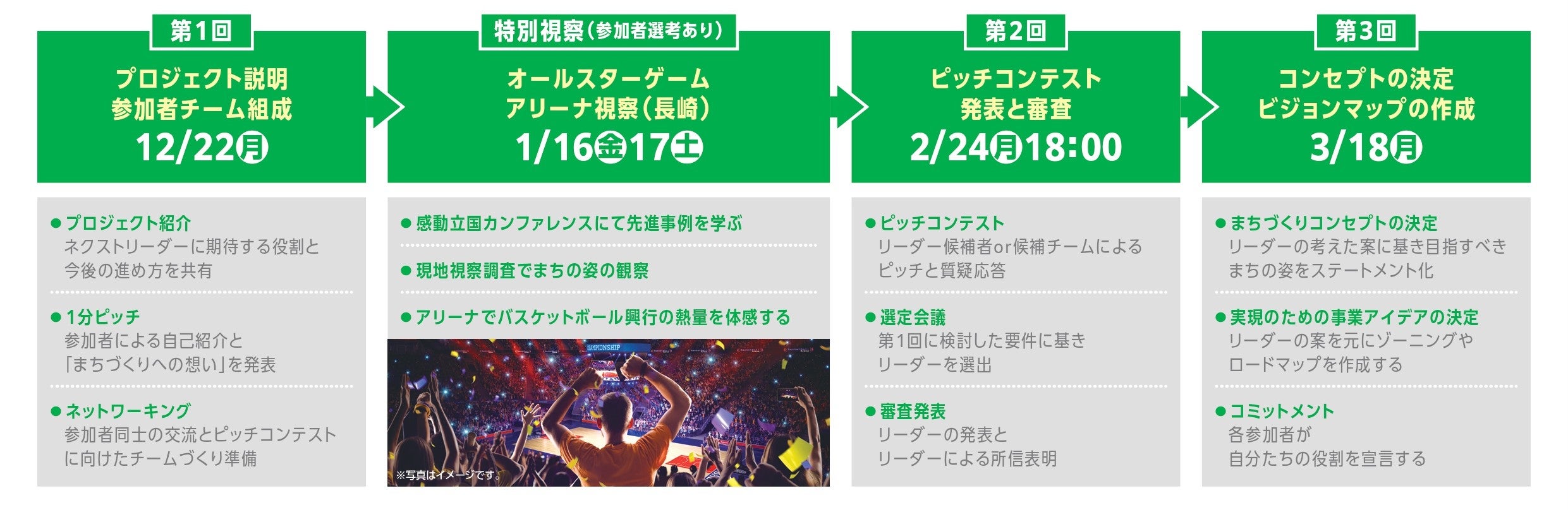 この度、公益社団法人ジャパン・プロフェッショナル・バスケットボールリーグ(B.LEAGUE)と公益財団法人日本財団が実施している地域課題解決を推進する取り組み「B.LEAGUE×日本財団まちづくり助成」事業の第三弾に採択された「新アリーナを起点としたまちづくり共創」事業として【ネクストリーダー発掘プロジェクト】がスタートし、現在参加者を大募集中です!