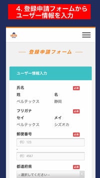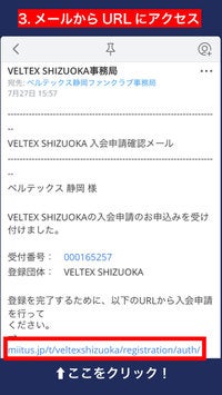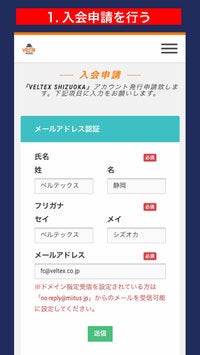 お名前とメールアドレスを入力し、入会申請を行ってください。https://miitus.jp/t/veltexshizuoka/registration/