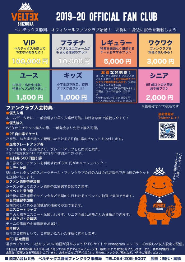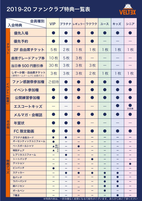 2019年7月26日(金)2019-20シーズンVELTEX静岡オフィシャルファンクラブ会員申込スタート