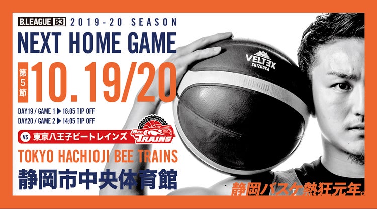 いつも温かいご声援ありがとうございます。 ベルテックス静岡の B3.LEAGUE 2019-20ホームゲーム第5節、東京八王子ビートレインズ戦10月19日(土)・20日(日)の販売概要が決定いたしましたのでお知らせいたします。