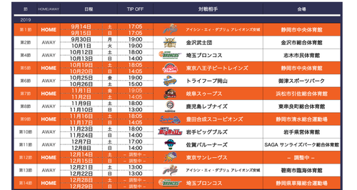 2019-20シーズン【第7節】ホーム試合の試合開始時間決定のお知らせとゲームスケジュール表更新