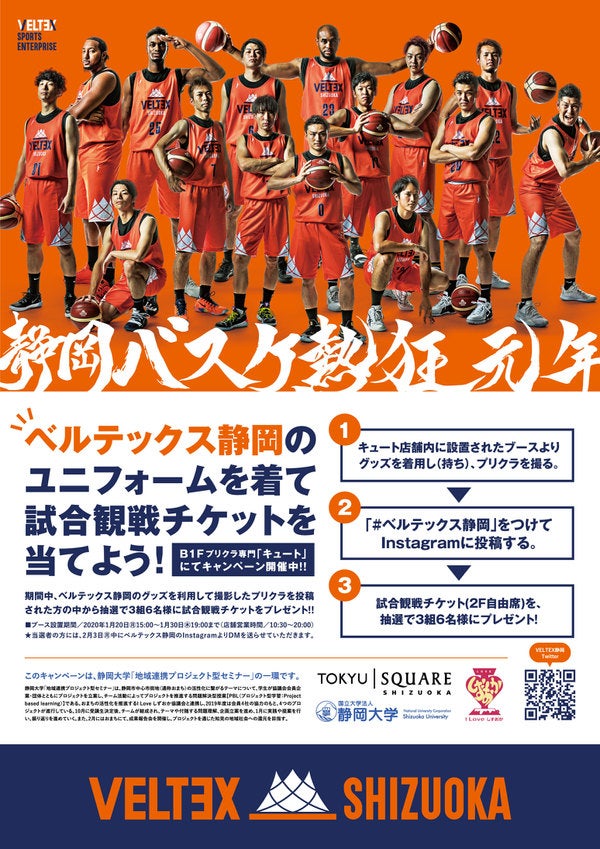 期間中、ベルテックス静岡のグッズを利用しプリクラを撮影した人の中から抽選で試合観戦チケット(2F自由席)をプレゼント。
