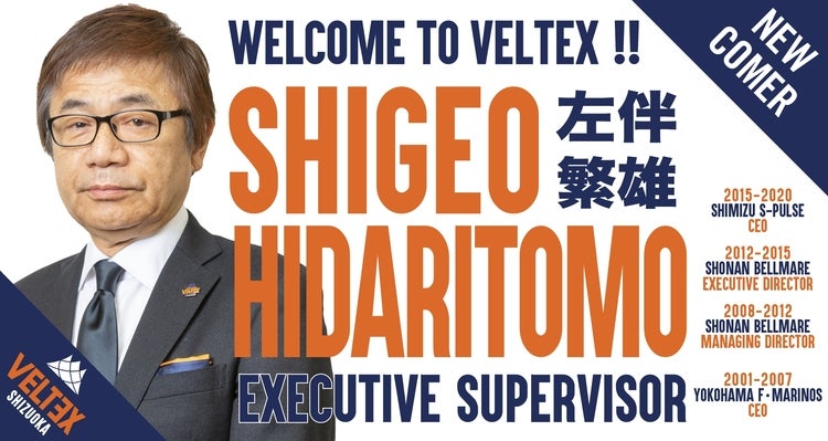 この度、ベルテックス静岡は、Executive Supervisor(エグゼグティブ スーパーバイザー)に左伴 繁雄(ひだりとも しげお)氏の就任が決定いたしましたのでお知らせ致します。