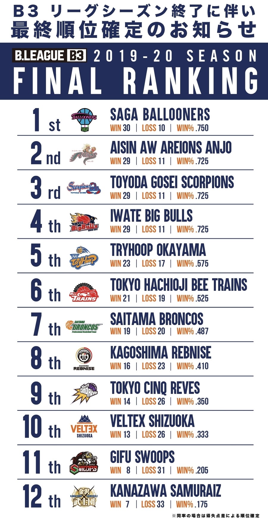 B3.LEAGUE2019-20レギュラーシーズン順位確定のお知らせ