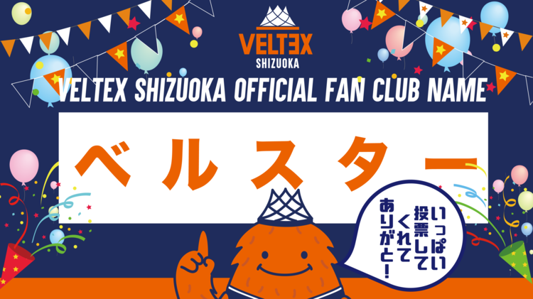 このたびベルテックス静岡のファンクラブ名を決めるべく、皆様に募集していた名前につきまして、150の名称候補、そして769件の最終投票により名称が決定いたしました!