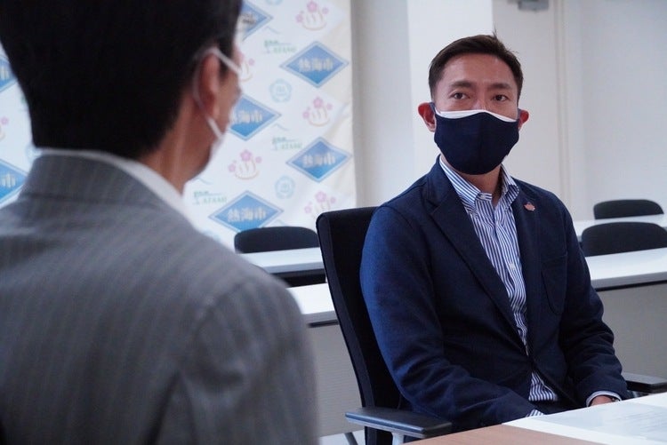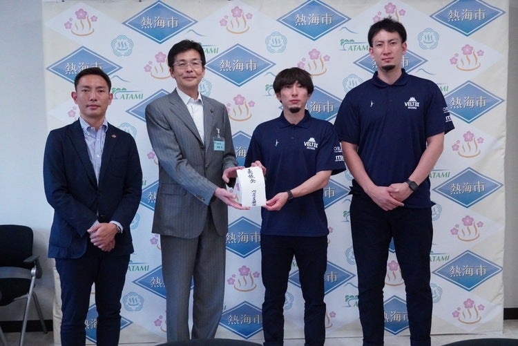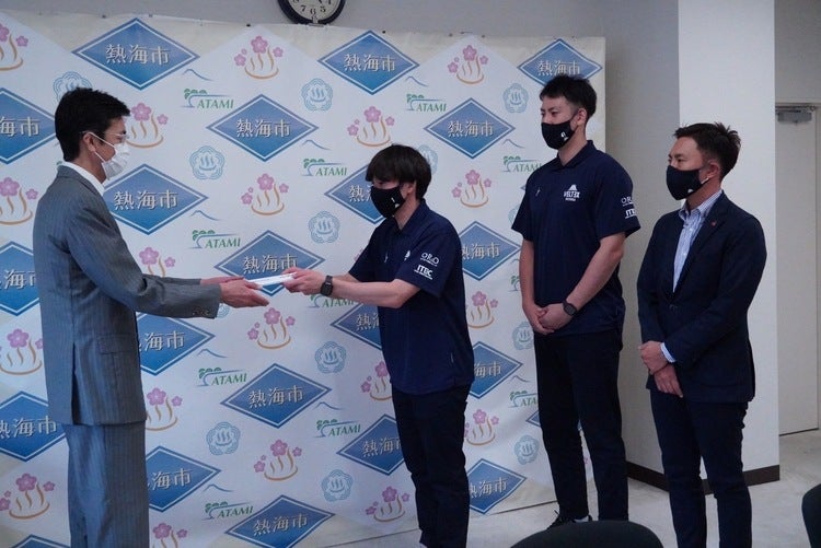 そして9月29日(木)に、齊藤 栄熱海市長を、株式会社VELTEXスポーツエンタープライズ 松永康太代表取締役社長、選手を代表いたしまして、加納誠也バイスキャプテン、大石慎之介オフコートキャプテンが訪問。