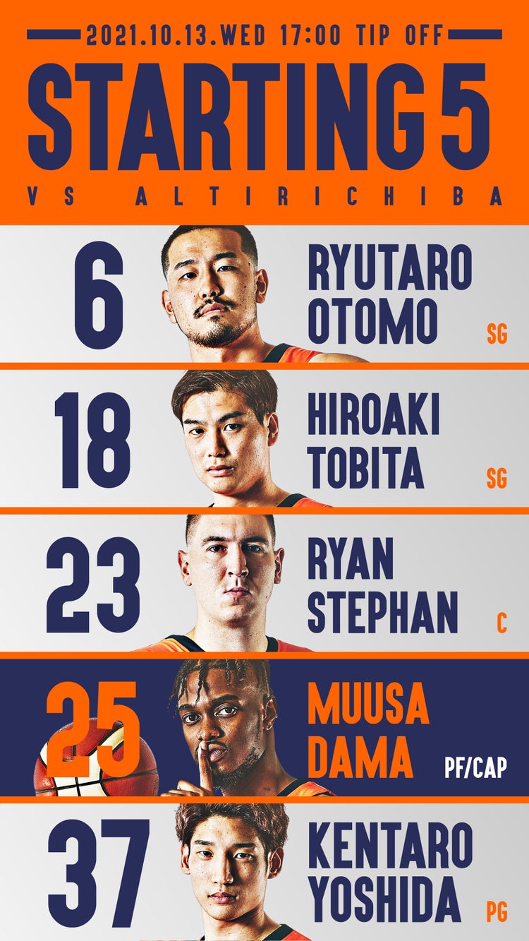 #6 大友隆太郎、#18 飛田浩明、#23 ライアン・ステファン、#25 ムッサ・ダマ、#37 吉田健太郎