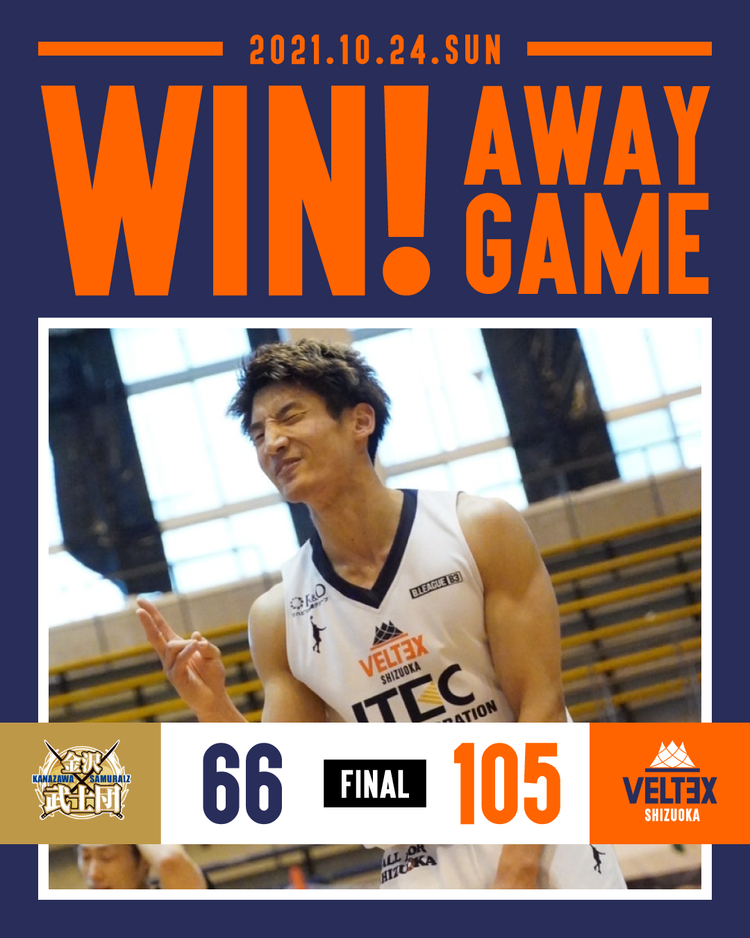 終盤少し相手に得点の流れを許してしまうものの、最後まで粘り強いプレーを見せ、最終スコア66-105、39得点もの点差をつけ勝利。本日の結果はクラブ史上最多得失点差となる試合となった。
