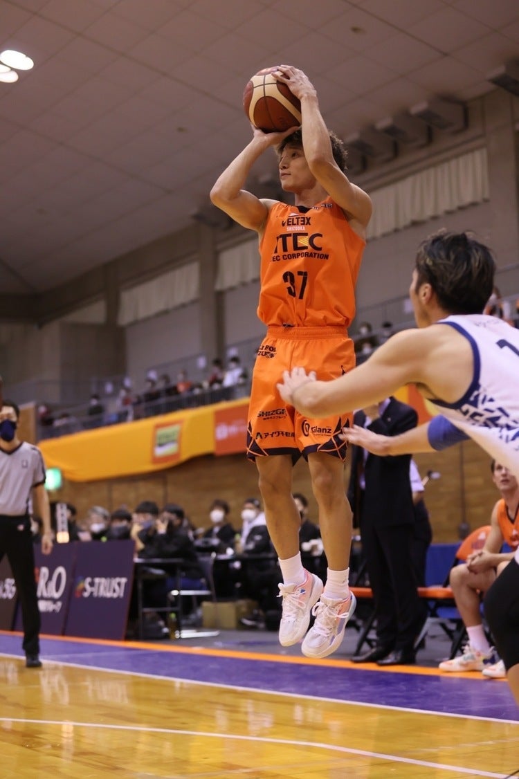 第2クォーター。流れを切らさず前半を戦い抜きたい静岡は、途中出場#37吉田のスリーで流れを繋ぐと、#3岡田のドライブ、#12福田のシュートが決まりリードを守る。対する長崎も着々と得点を積み重ねるが、前半残り3分、#18飛田のスリーポイントや#23ステファンがリング下で力強いプレー見せ、51-42で後半戦へ。