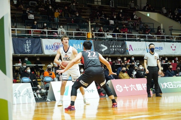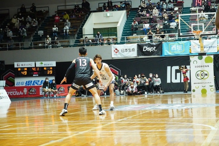 開始から4分間中々得点をあげられず、岐阜#13福井のスリー、#34ジョンソンに得点を許し6点を追いかける展開。