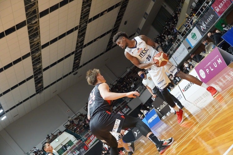 第3クォーター。スタートは静岡#13東がリングへアタック。相手のビッグマンを誘い出すと#23ライアンがリング下で合わせるなど、リング下で2連続得点をあげる。しかし岐阜#24アレックス、#34ジョンソンに隙を与えてしまい簡単に得点を許してしまうも、45-56と点差を広げ最終クォーターへ。