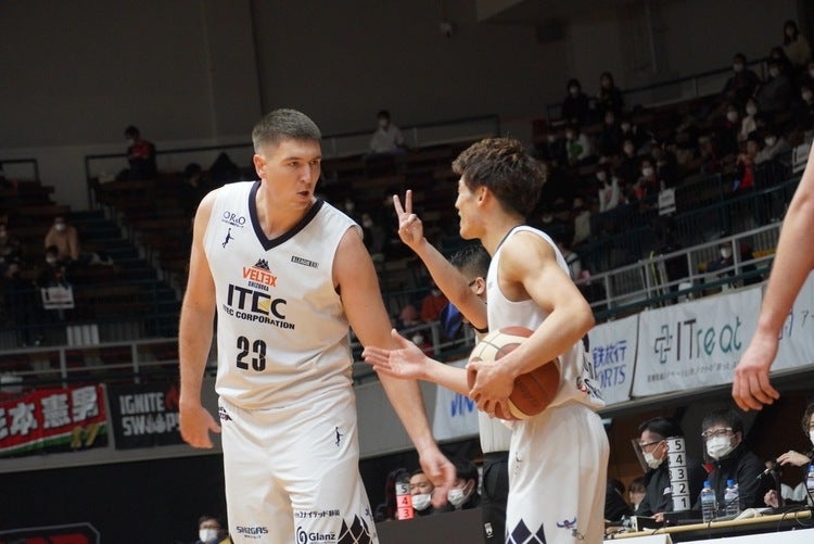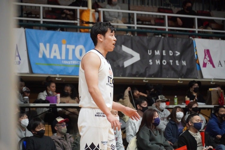 第4クォーター。序盤から静岡#7アレクシスが得点を積み重ね少しずつ点差を広げる。その後、味方のシュートに対して#41加納がオフェンスリバウンドに飛び込みボールを繋ぐと、リング下のスペースに抜け出し、そのままアンドワンを獲得。リードを16点に広げる。終盤には#6大友、#18飛田のスリーが決まり、最終スコア60-80。アウェーで2連勝をあげた。