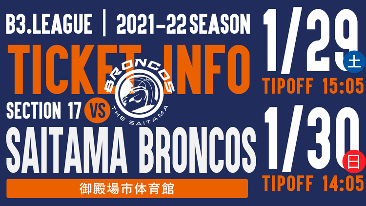 第17節 さいたまブロンコス戦チケット販売のお知らせ