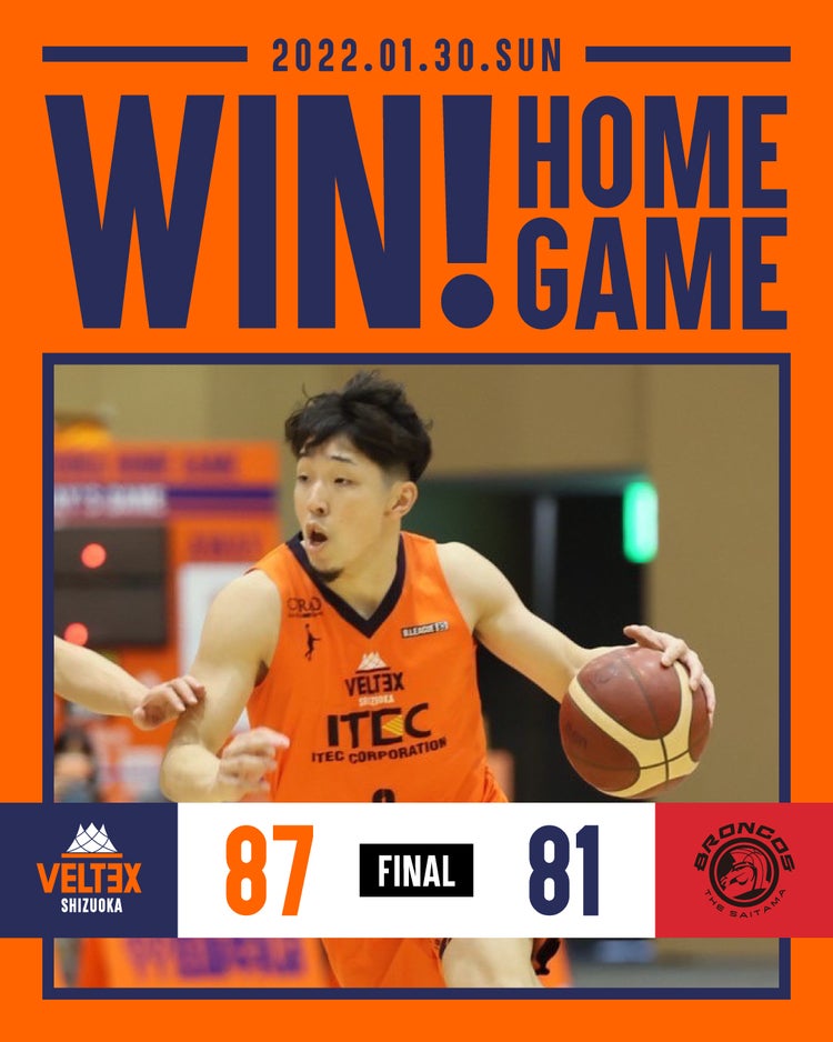 この場面で嫌な流れを断ち切ったのが静岡#13東。相手一瞬の隙を突いたドライブで得点をあげる。その後も一進一退の展開が続くも、ラストオフェンスで#3岡田のドライブに#37吉田が合わせ、スリーポイントを沈める。このプレーで#3岡田は今季最多得点タイ17ポイント、9アシストを更新。最後までリードを守り切り最終スコア87-81、2022年ホーム初勝利となった。