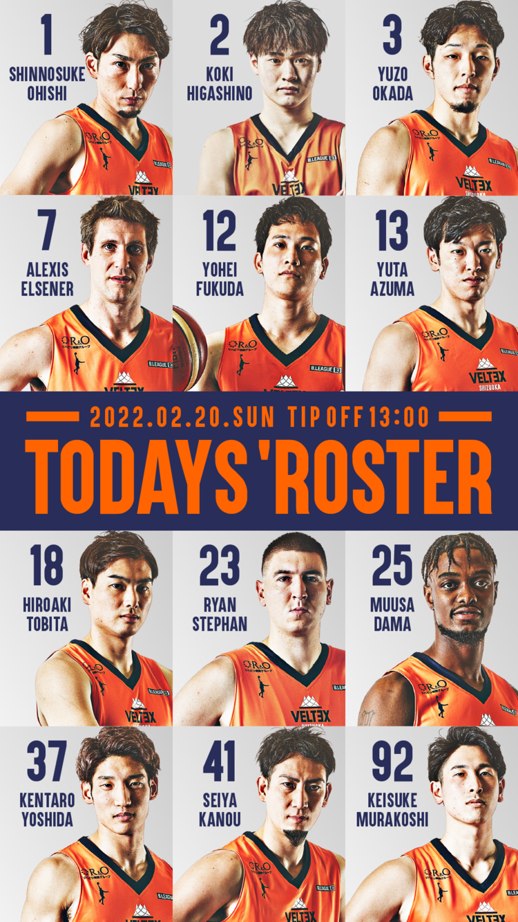 #1 大石慎之介、#2 東野恒紀、#3 岡田雄三、#7 アレクシス・エールセネル、#12 福田陽平、#13 東祐太、#18 飛田浩明、#23 ライアン・ステファン、#25 ムッサ・ダマ、#37 吉田健太郎、#41 加納誠也、#92 村越圭佑