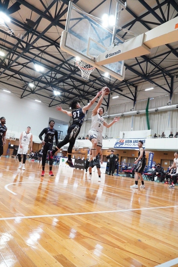 この嫌な流れを変えたのは静岡#23ライアンのレイアップだった。体勢を崩されながらも気持ちで決め切り、5点リードでオフィシャルタイムアウトを迎えた。残り4:24には静岡#37吉田がアイシン#40ジョーダンとの1on1で果敢にドライブで挑み、大きく体勢を崩されながらもレイアップを決め、チームに勢いを与えた。その後、アイシンは#27鈴木の連続得点で食らいついてくるが、静岡は与えられたフリースローできっちりと得点を重ね、最終スコア75-79の4点差で辛くも勝利を収めた。