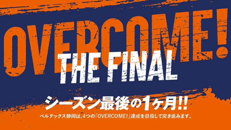 この度、ベルテックス静岡では「OVERCOME! THE FINAL」と題しまして、4月より選手・スタッフ・パートナー企業様・ブースターの皆様一同で様々な壁を乗り越えていくプロジェクトを始動いたします。