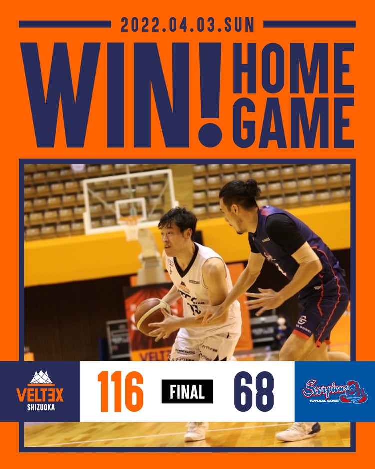 ベルテックス静岡 116-68 豊田合成スコーピオンズ