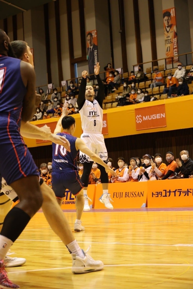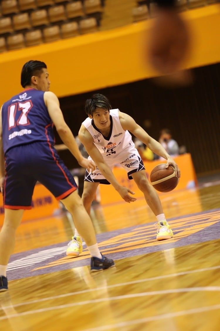 個人的には、マークマンの選手に試合の入りで1本簡単に抜かれてしまう場面がありましたが、平均得点の半部以下に抑えられたので良いディフェンスができたかなと評価しています。また前半のスリー3本に関して、僕自身はキャッチアンドシュートは得意で、決めるための準備は日々しっかりとしてきているので、それがしっかりと数字に残せたかなと思ってます。