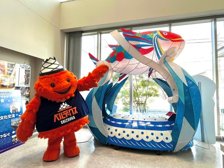 しみず在住ヘンテコまぐろ「つなぐくん」のぼんぼりがベルテックスのホームアリーナに登場!会場でつなぐくんと記念写真を撮ろう!