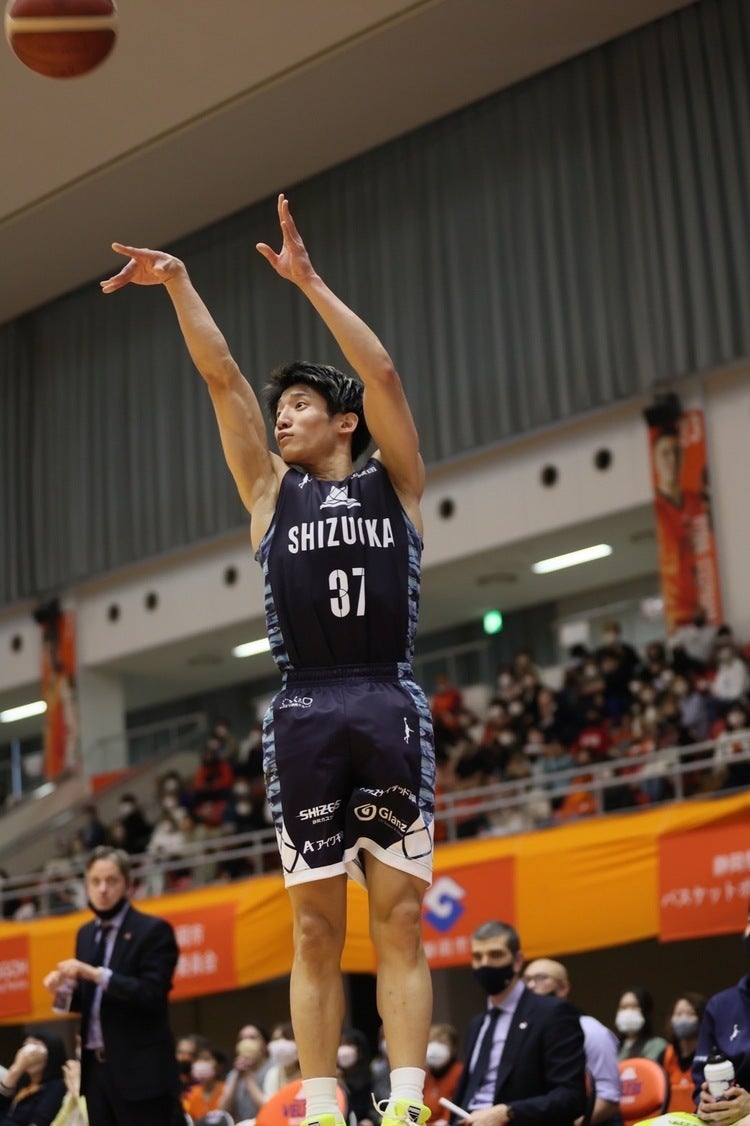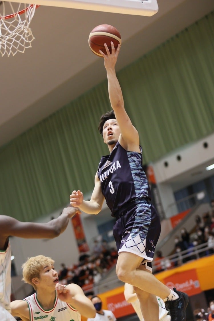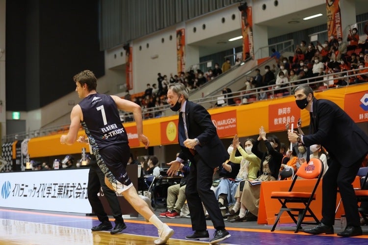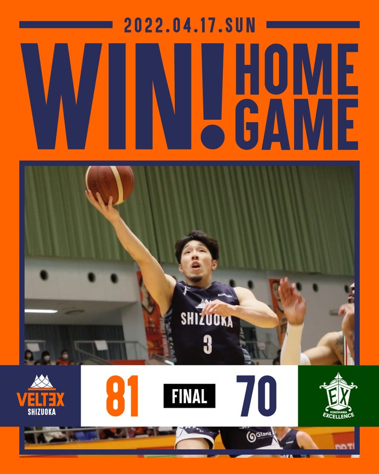 その後も#7 アレクシス、#3 岡田のドライブ、#23 ライアンが裏を狙い得点を重ねるなど更に勢いを加速。最後まで攻めの手を緩めな勝った静岡が81-70で勝利。14連勝を収めた。