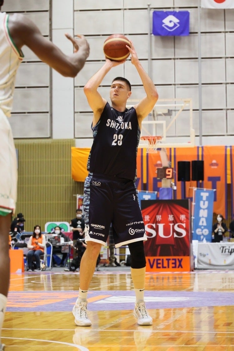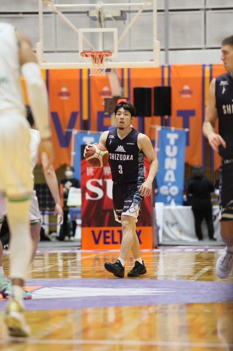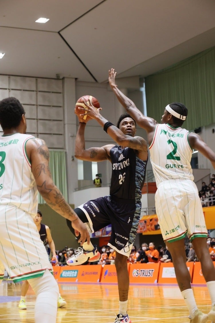 ここから流れを変えたのが静岡キャプテン。#25 ムッサを起点に全員がアグレッシブなプレーをみせスティールからファーストブレイクに繋げ、#7 アレクシス がスリーを決めるなど3連続ポイントを挙げ勢いに乗る。その後も#37 吉田が外国籍選手のディフェンスを上手く交わし得点を挙げるなど62-53、9点リードで最終クォーターを迎える。