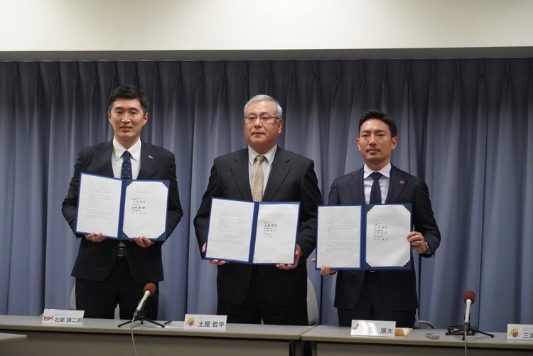 このたび、三遠ネオフェニックス様及びベルテックス静岡様と県内のバスケットボールにおける普及及び活性化を目的とし、包括的な事業を連携していく運びとなり、本日このような場を設けさせていただきました。