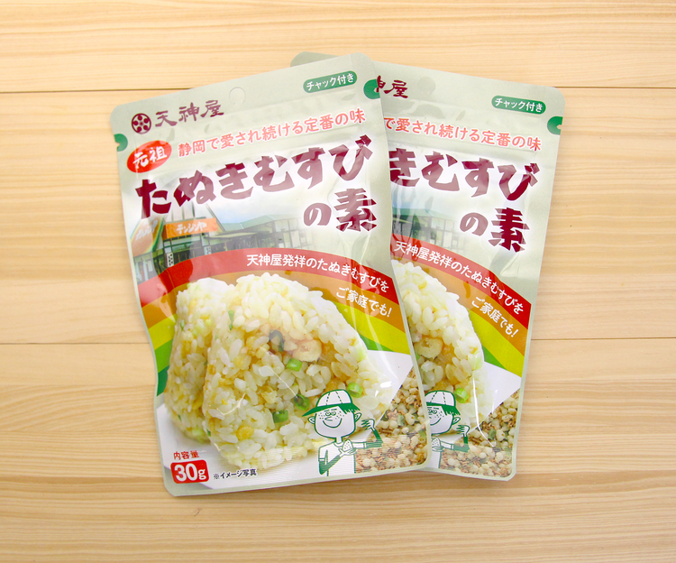 ▶天神屋大人気商品!しずおかで愛され続ける定番の味「たぬきむすびの素」!自宅で簡単にたぬきむすびの味が楽しめちゃいます!