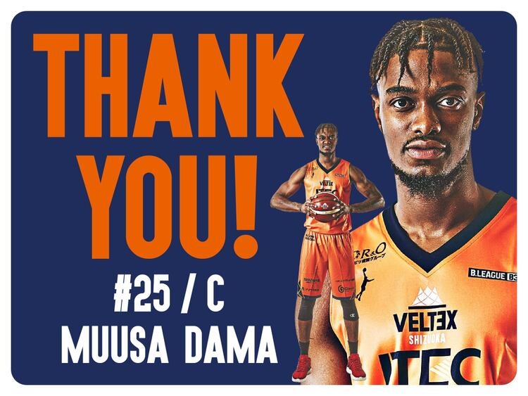 この度、ベルテックス静岡では、#25 ムッサ・ダマ 選手とのB3.LEAGUE 2021-22シーズンの選手契約が満了となり、本日2022年5月20日(金)15:00にB.LEAGUE自由交渉選手リストへ公示することをお知らせいたします。