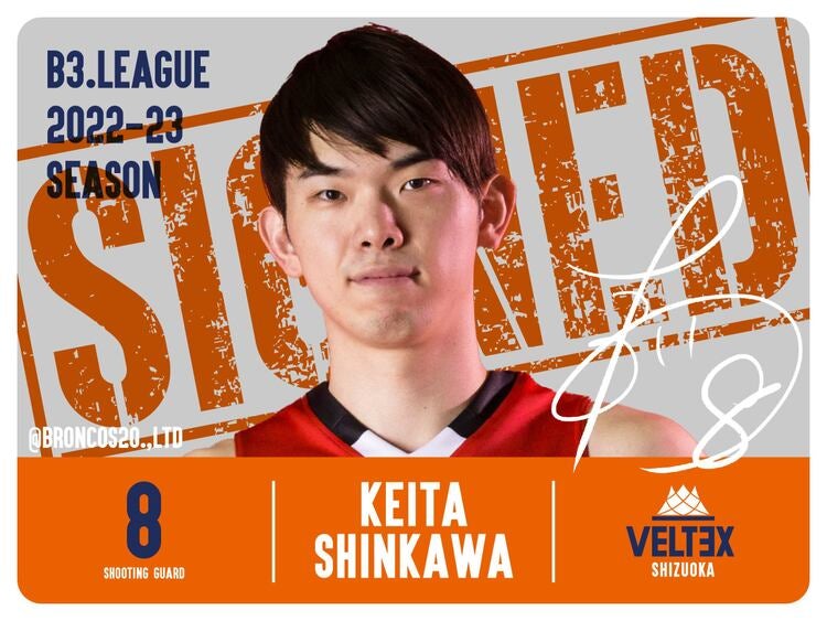この度、ベルテックス静岡は、2022-23シーズンにおいて #8 新川敬大 選手と契約合意(新規)しましたのでお知らせします。