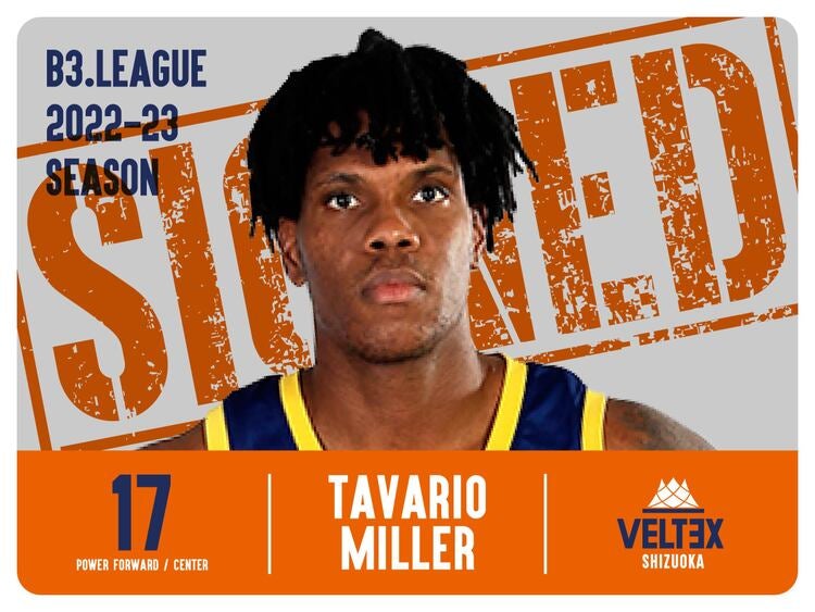 この度、ベルテックス静岡は、2022-23シーズンにおいて #17 タバリオ・ミラー 選手と選手契約合意(新規)しましたのでお知らせします。