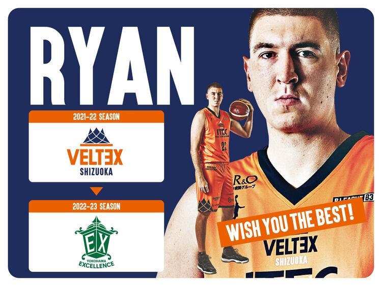 このたび、ベルテックス静岡では、#23 ライアン・ステファン 選手とのB3.LEAGUE 2021-22シーズンの選手契約満了となり、横浜エクセレンス(B3リーグ)へ移籍が決定しましたのでお知らせします。