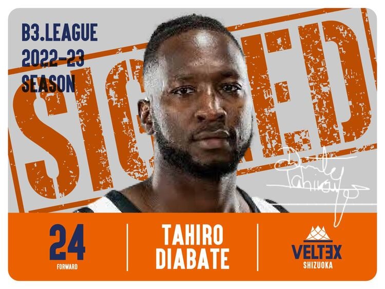 この度、ベルテックス静岡は、2022-23シーズンにおいて #24 タヒロウ・ディアバテ 選手と選手契約合意(新規)しましたのでお知らせします。