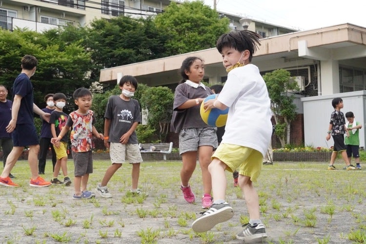 今回、子ども食堂に参加してくれたのは小学生1年~6年生までの21名。学校の休み時間遊びでもお馴染みの鬼ごっこや、小学校中学年で取り組むポートボールを通じて、子どもたちと交流を深めました。